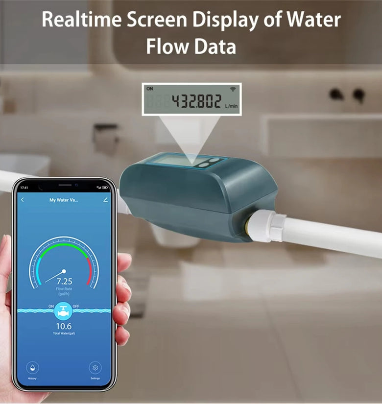 • NEO DN20 Tuya Smart WiFi Water Valve Water Flow Rate and Water Meter Shut On/Off Remote Control Real Time Display IP66 Waterproof Work with Alexa Google Assistant