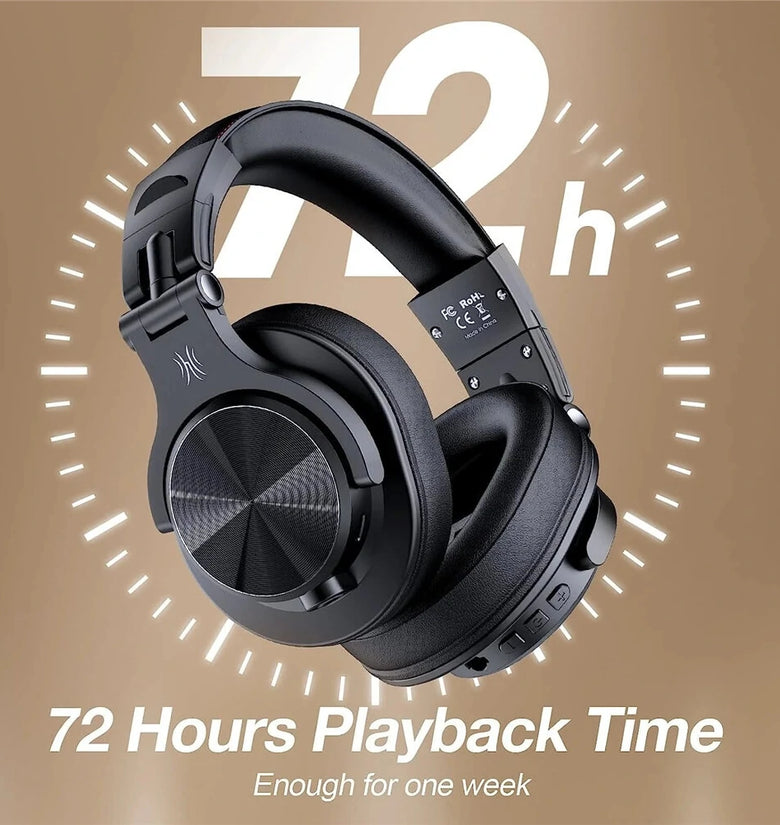 Dual Mode and Never Power OffEnjoy up to 72 hours of playtime in wireless mode, or switch to wired mode using the included two audio jack cables (6.35mm to 3.5mm and 3.5mm to 3.5mm). With wired mode, your headphones will never run out of power.