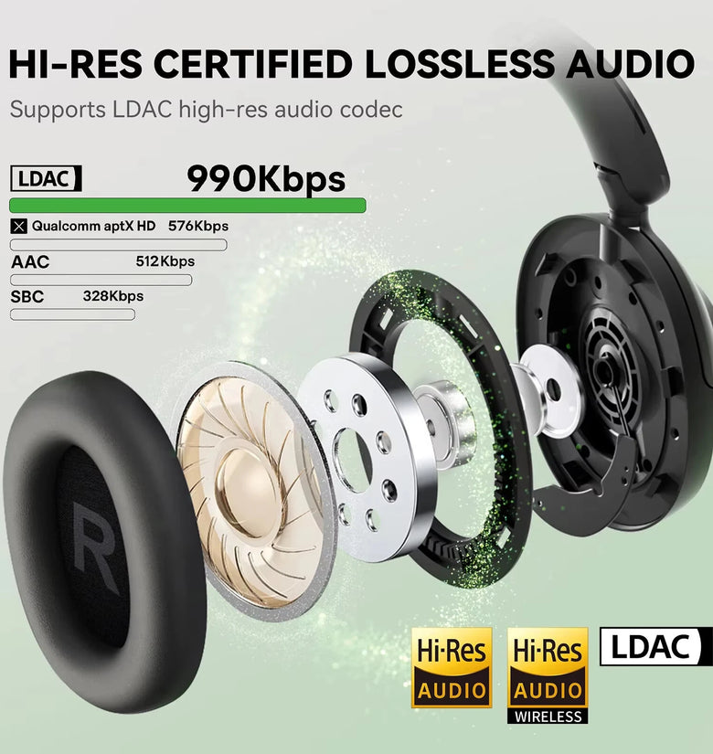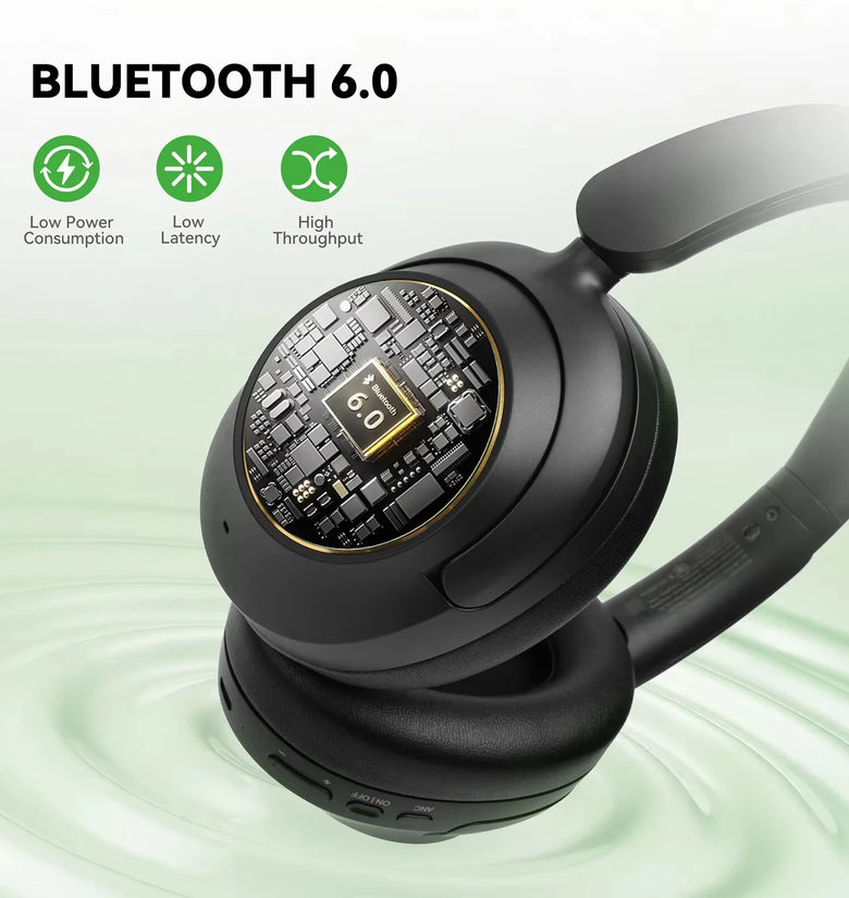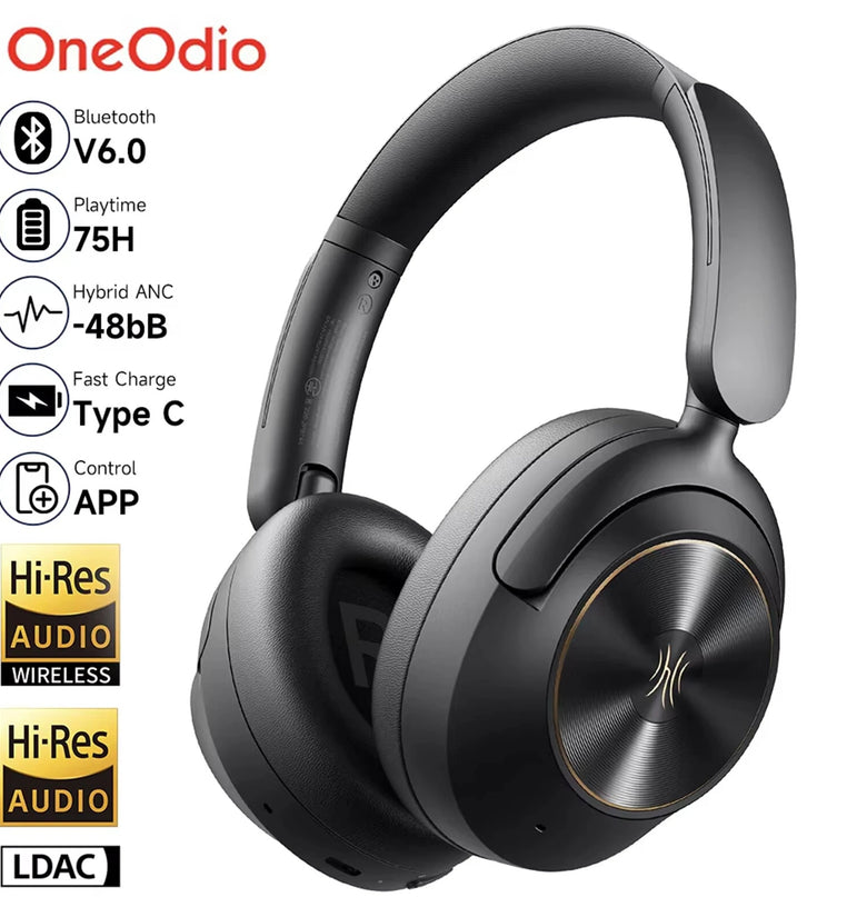 • Oneodio Focus A6 Wireless Headset Bluetooth V6.0 Headphones -48dB Dual Active Noise Cancelling 5-mic ENC AI Call Noise Reduction 40mm HiFi Driver 3D Spatial Sound 75H Playtime Support Wired Connection Low Latency Over-Ear Headphones