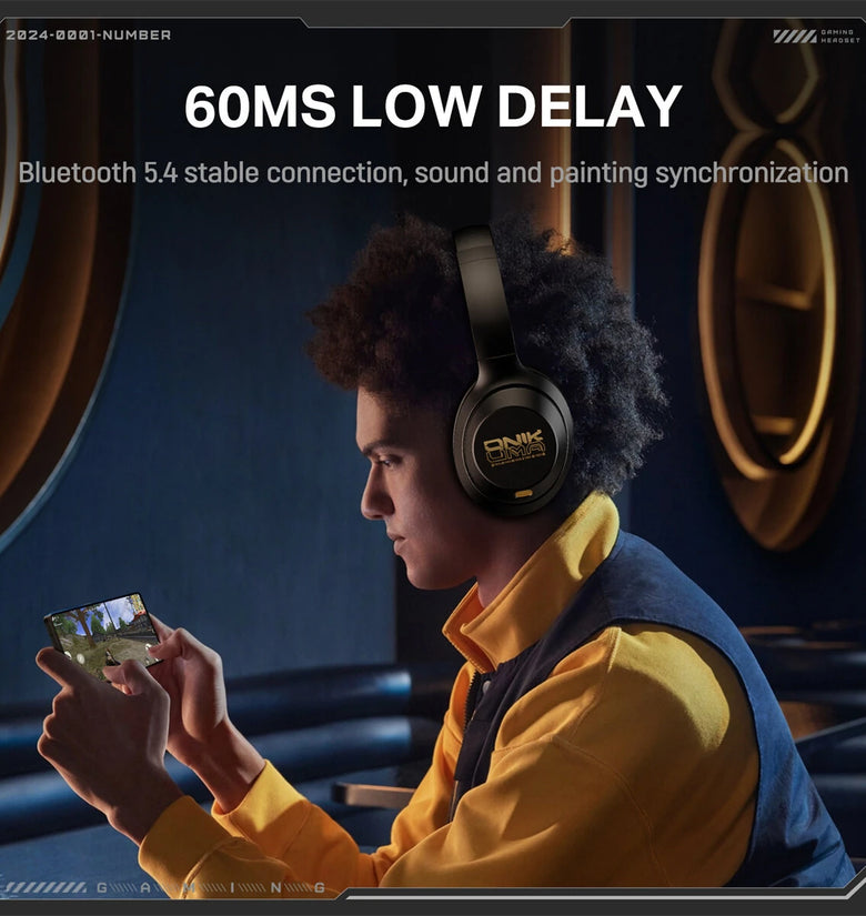 • ONIKUMA GT811 bluetooth 5.4 Gaming Headset Dual Noise Reduction Headphone ANC ENC Noise Cancelling 40mm Horn 55H Playback 60ms Low Game Delay Support 3.5mm Wired Connection On-ear E-sports Headphones