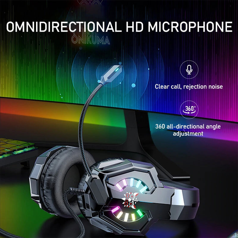 • ONIKUMA X32 Gaming Headset Wired Headphone 50mm Drive Unit Stereo Surround Sound RGB Light HD Flexible Microphone Ergonomics USB 3.5mm On-head Wired Headphones