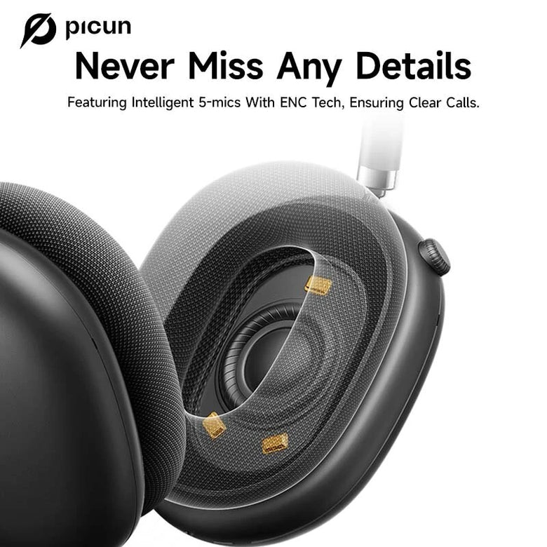• PICUN F8 Pro Wireless bluetooth 5.4 Headset Dual Noise Reduction Headphone ANC ENC Noise Cancelling 40mm Titanium-Plated Diaphragm Speaker AAC Audio 140H Playback Low Delay Removable Earmuffs Headphones with Mic