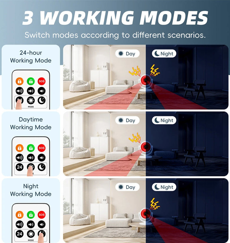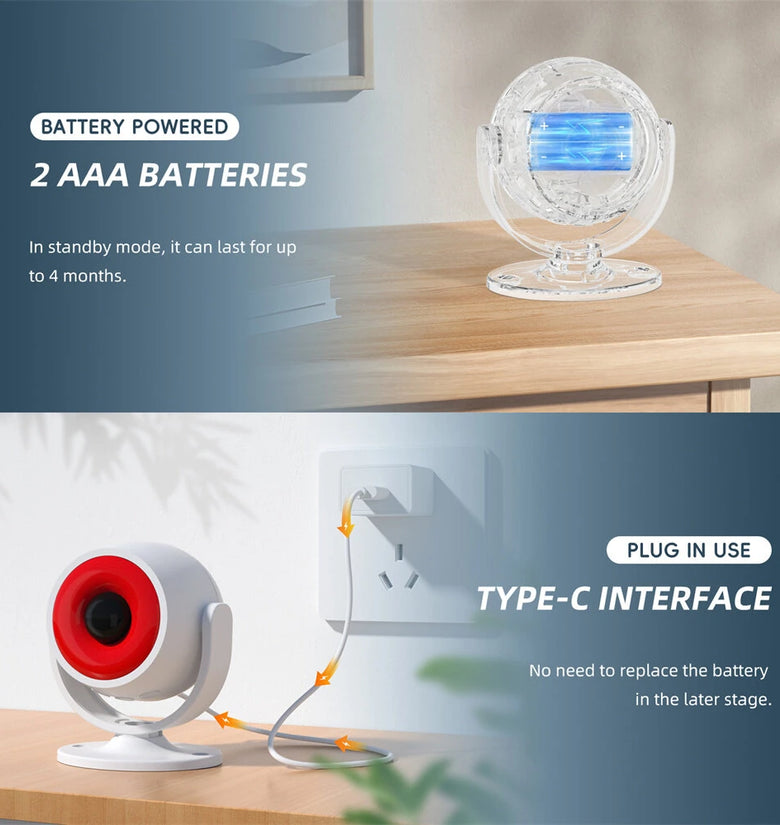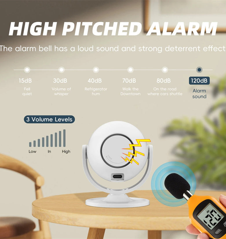 1. High-Decibel Alarm: Emits an alarm sound up to 120dB to effectively deter intruders.