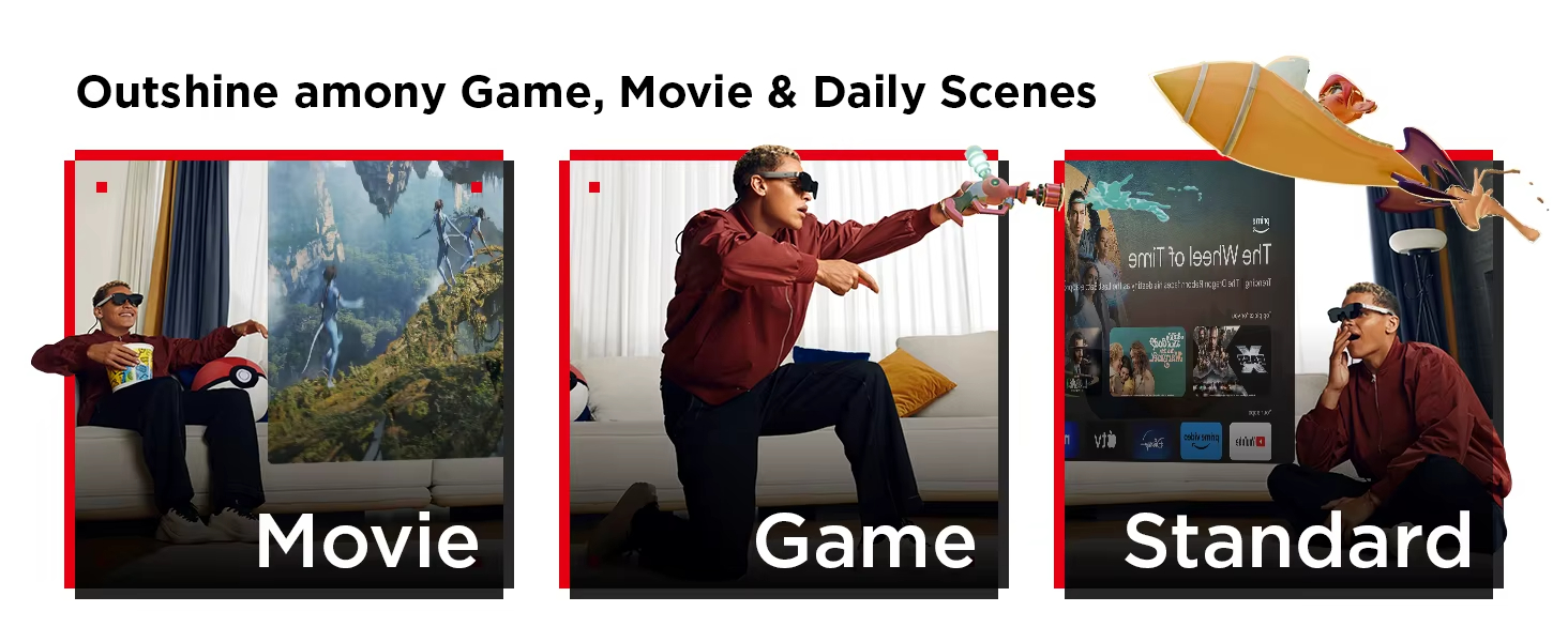 3. Smart Display Modes: One-button switching between Game Mode (120 Hz refresh rate), Movie Mode (enhanced contrast/color), and Standard Mode—no app or pairing required.
