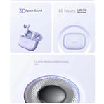 4. Battery Life: Impressive 40-hour long-lasting battery life when paired with the charging case (50% volume, standard mode). Earpieces contain a 58mAh battery each, and the case has a substantial 480mAh capacity.