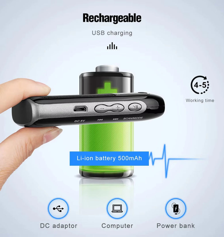 8. Rechargeable Convenience: Comes with a USB cable for easy charging via DC adaptor, computer, or power bank. Fully charges in 4 hours and works for an additional 4-5 hours.