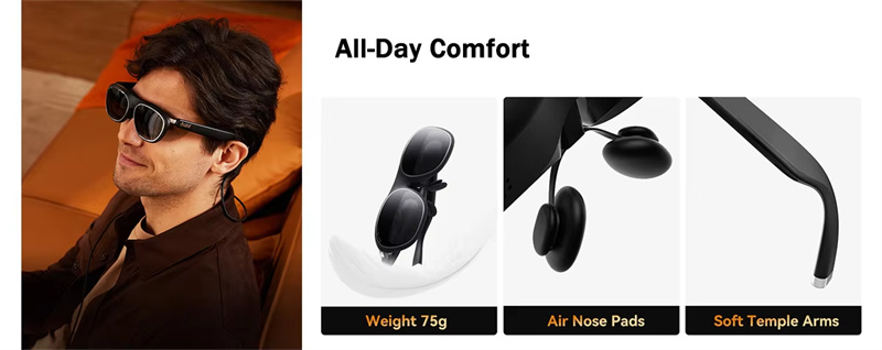 • Rokid Max 2 AR Glasses 3D Game Viewing Smart Device 50 Fov 160'' 120Hz Micro OLED Screen 2 Near-ear Directional Speakers 75g Lightweight Smart Audio Glasses