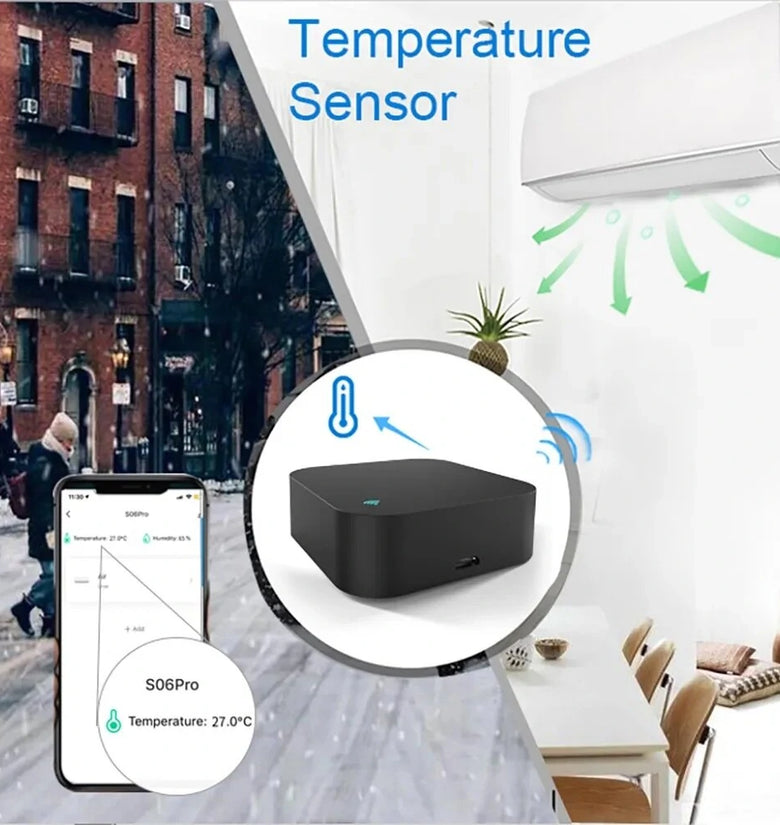 With the help of the built-in sensor, you can know the temperature and humidity in the room at any time. And according to their values, do subsequent automation. For example, turn on the air conditioner when the temperature is higher than 26 ℃, and turn on the humidifier when the humidity is less than 50%
