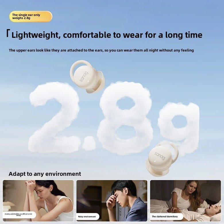• Sanag J20s Sleep Headphone TWS bluetooth 5.4 Earphone 66+ Sleep-Aid White Noise Sound 24dB Physical Noise Cancelling Side Sleep Without Ear Pressure 27H Playback Professional Sleep Earbuds