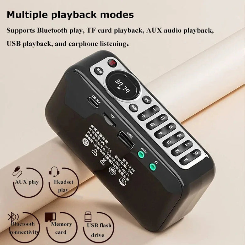 Versatility at its finest—this speaker supports multiple playback modes including bluetooth, TF card, USB, and 3.5mm AUX input. Whether you prefer wireless connectivity or other media sources, the SANSUI F35 accommodates all your audio needs seamlessly.