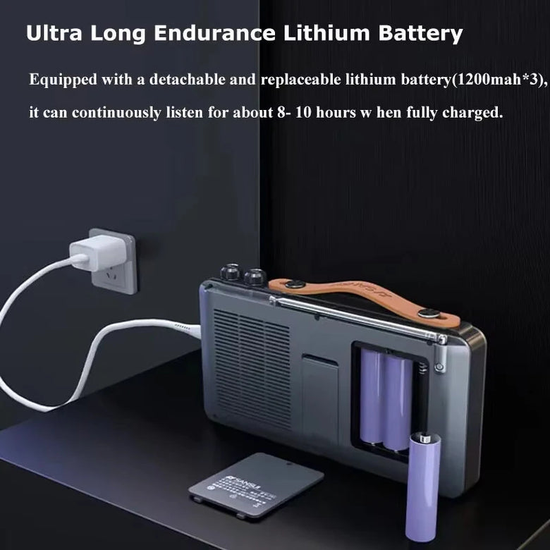3. High Sensitivity Antenna: 360-degree rotating lever 53cm antenna for FM, AM, and SW bands, including automatic radio reception and for campus broadcasting support.