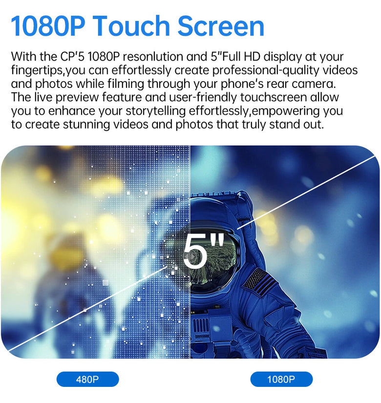 • SHIMBOL CP5 1080p Full HD 5'' Touch Screens Rear Camera Selfie Monitor for Vlog Live Streaming Compatible for iPhone Android