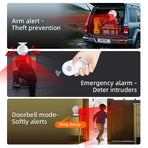 4. Multifunctional Modes: Includes arm alert for theft prevention, emergency alarm to deter intruders, and doorbell mode for gentle alerts.