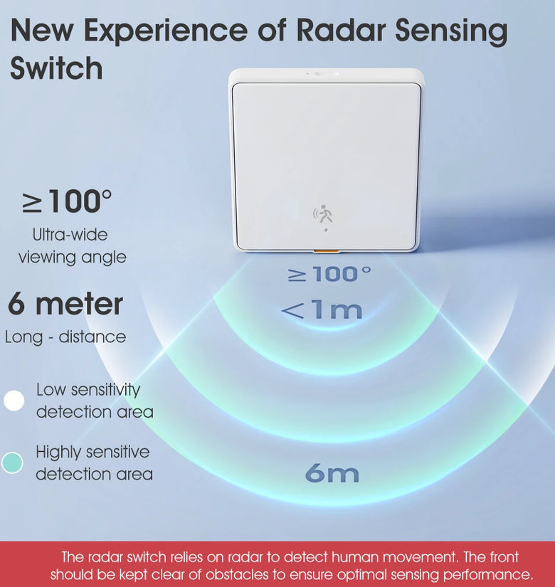 【10G millimeter wave radar accurate detection】: 6 meters detection distance, 100° wide-angle coverage, quick perception of human presence, suitable for multiple scenes such as bedrooms, corridors, warehouses, etc.