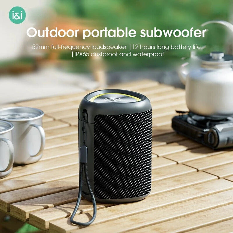 6. IP65 Waterproof: Resilient against dust and water, this speaker withstands nature's elements, making it perfect for outdoor use.