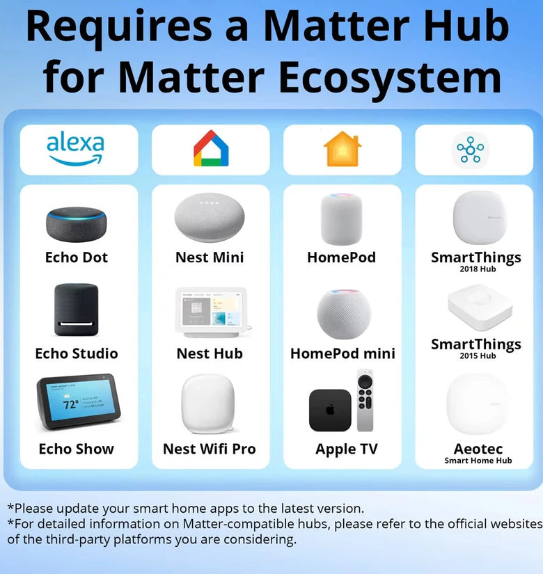 1. Matter Protocol Compatibility: Seamlessly integrates with platforms like Alexa, Google Home, and Apple Home.