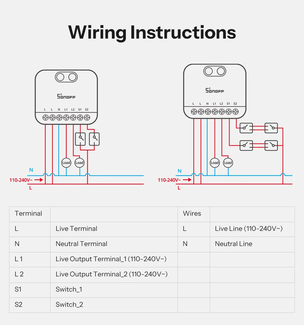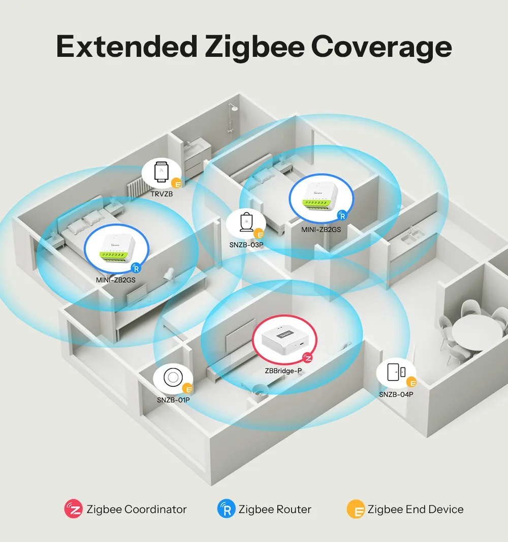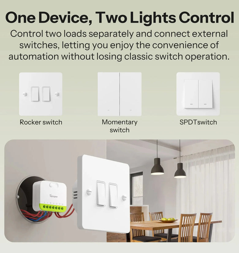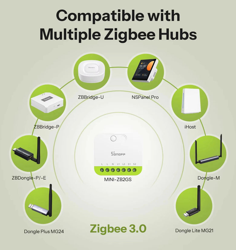 • SONOFF MINI-ZB2GS MINI DUO 2-Gang Zigbe Smart Switch Dual Load Control Zigbee3.0 Compatibility Signal with Multiple Zigbe Hub