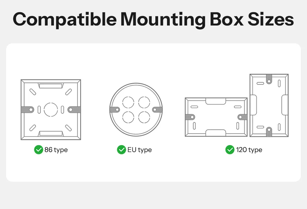 3. Compact Design: Fits seamlessly into various mounting boxes (EU type, 120 type, 86 type).