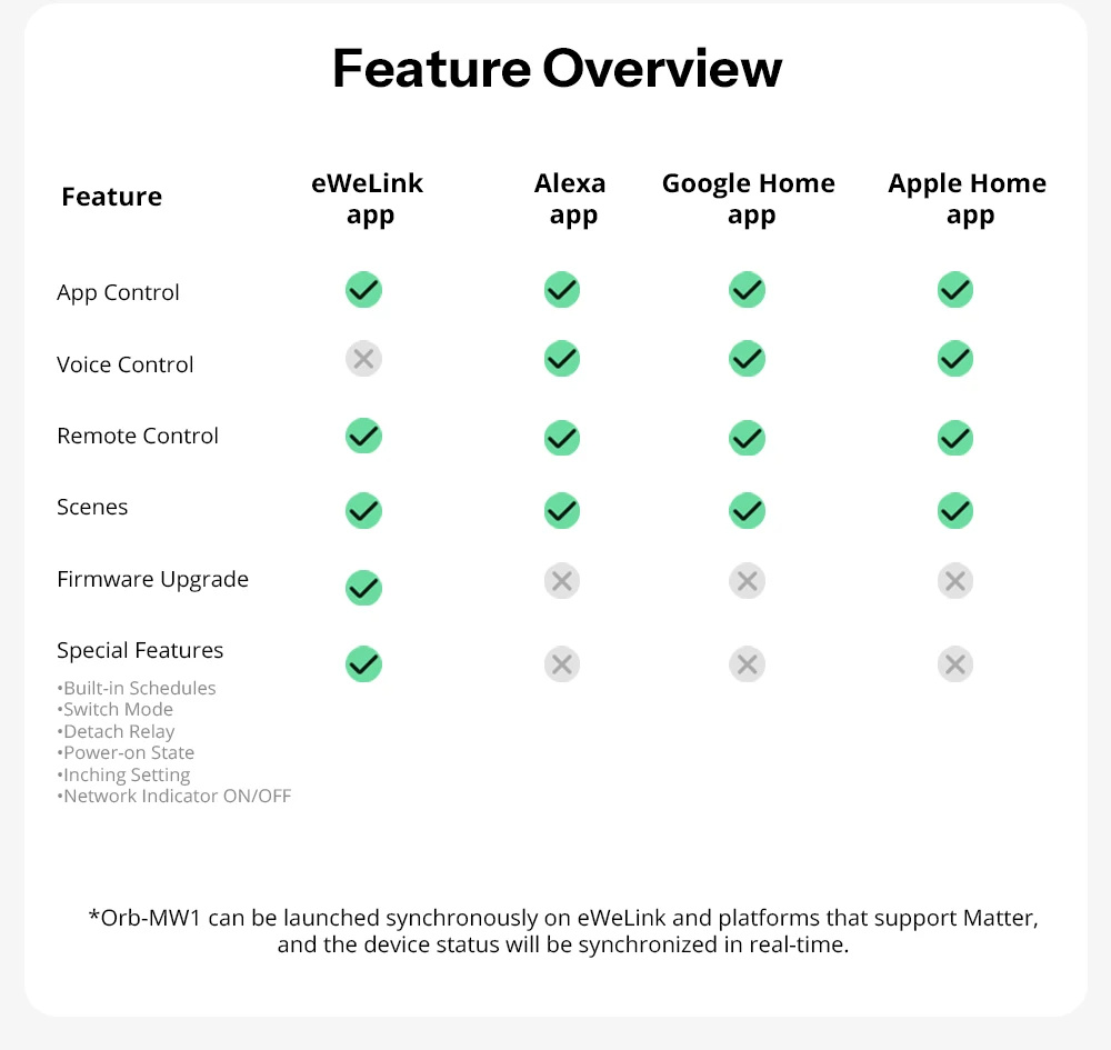 1. Matter Compatibility: Fully integrates with Matter-supported devices such as Alexa, Google Home, Apple Home, for Samsung SmartThings, and more.