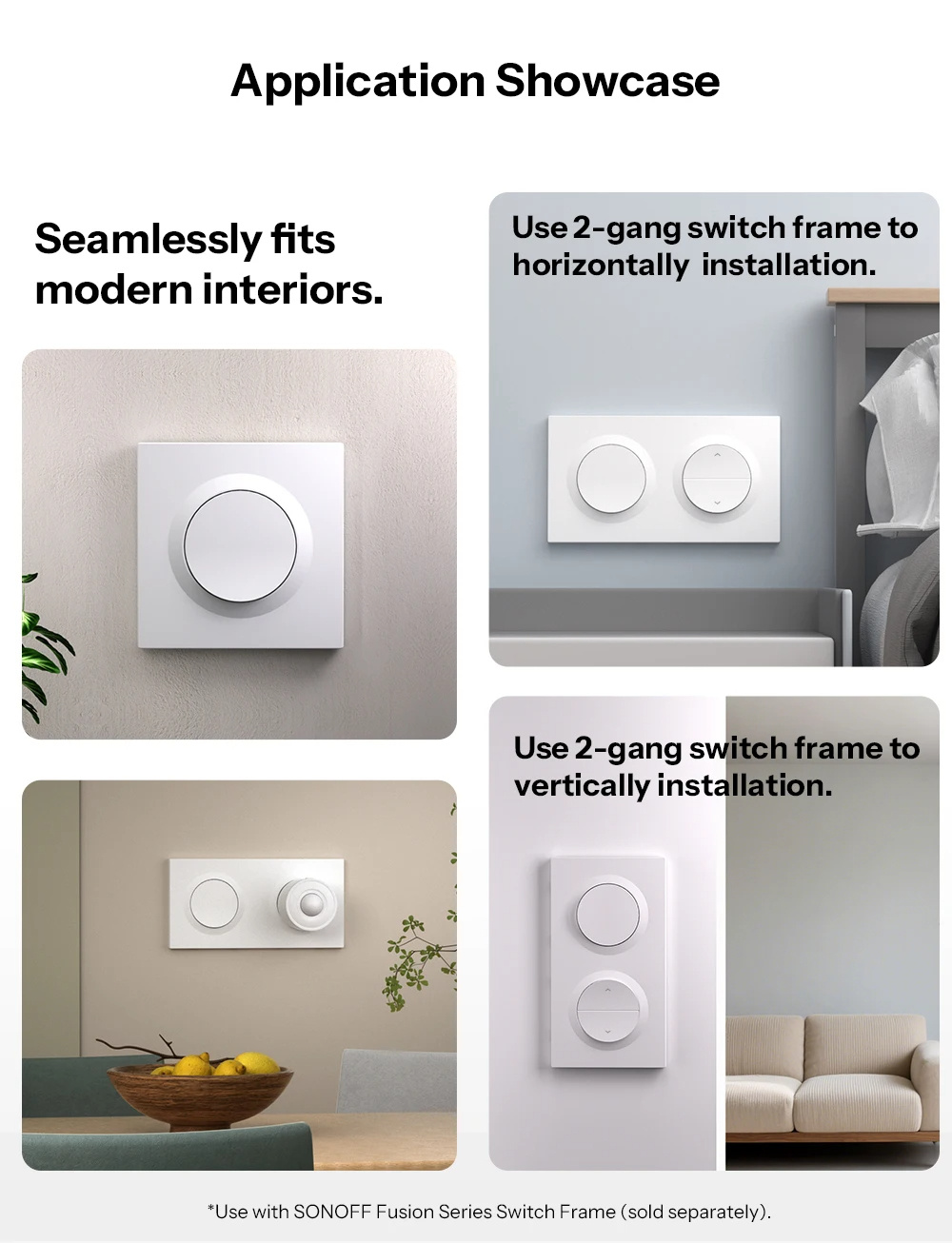 5. Customizable Setup: Suitable for horizontal or vertical installation with a 2-gang switch frame (sold separately).