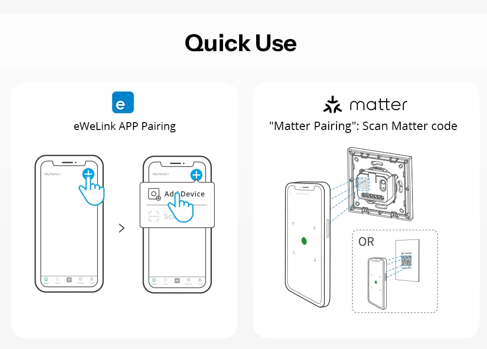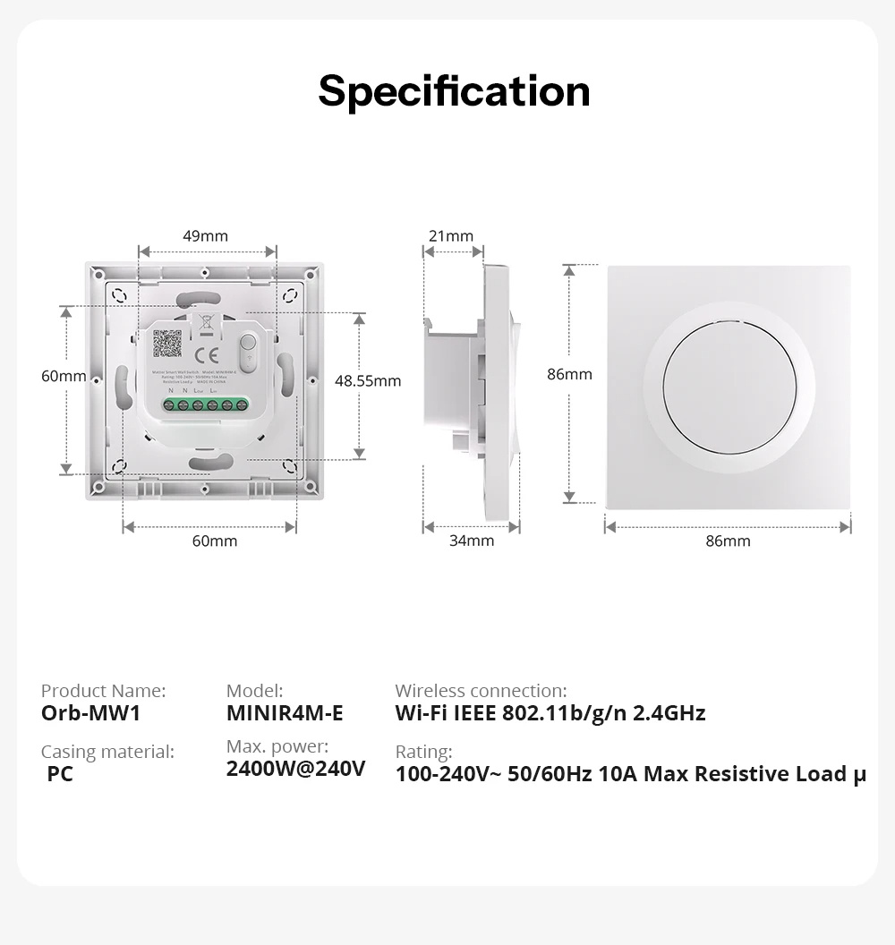• SONOFF MINIR4M-E Matter Over WiFi Smart Wall Switch Orb-MW1 Fusion Series Voice Control Google Home Alexa Works With Apple Home