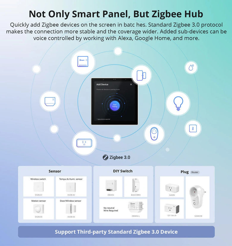 4. Zigbe 3.0 Compatibility: Featuring Zigbe 3.0 technology, the NSPanel Pro can seamlessly connect and communicate with other Zigbe-enabled devices, expanding your smart home ecosystem and enhancing automation capabilities.