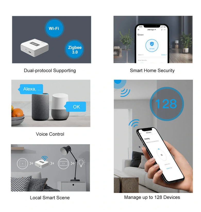 3. Voice Assistant Compatibility: The SONOFF ZB Bridge-P is compatible with popular voice assistants like Alexa and Google Assistant. This allows for convenient hands-free control of your smart devices using voice commands. Simply ask your voice assistant to turn on lights, adjust thermostats, or perform other tasks.