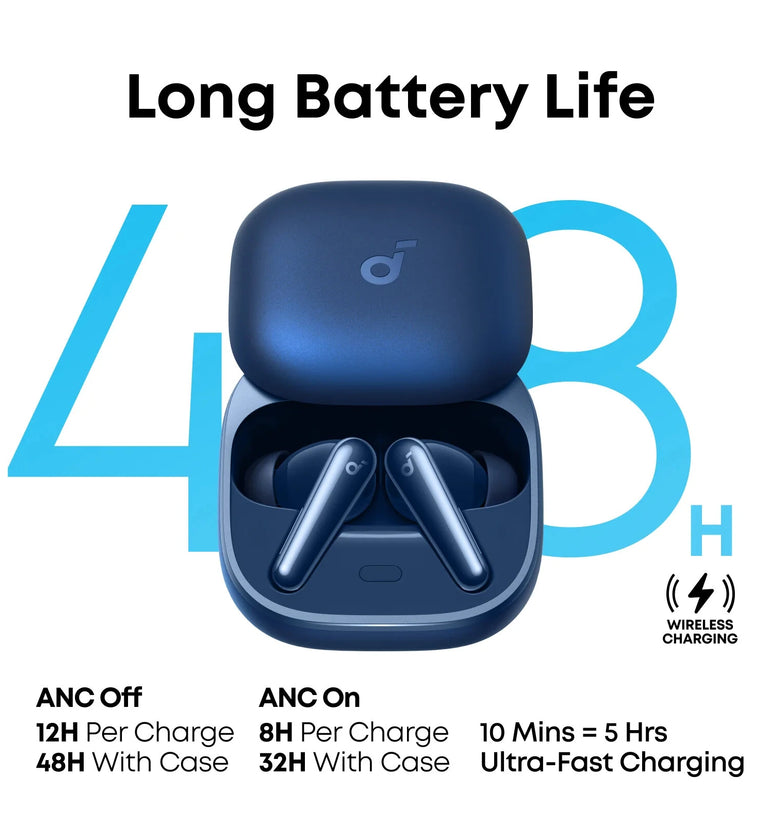 5. Long Battery Life: Offers up to 48 hours of playback (ANC Off) with quick charging capabilities.