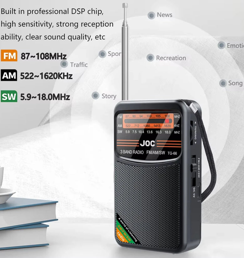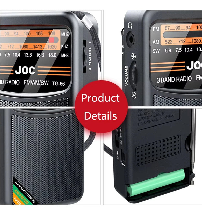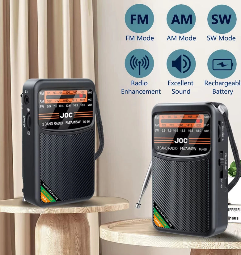 • TG-66 Portable Radio AM FM SW Pocket Radio with Rechargeable Battery Good Reception Supports Wired Earphone Mini FM Receiver Radios