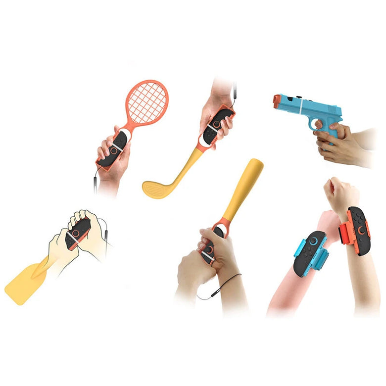 • TNS-5113 Switch2 Sports 24-in-1 Motion Controller Kit for Nintendo Switch Joy-Con with Tennis Racket Fishing Rod Gun Grip Leg Strap VR Accessories Family Game Set