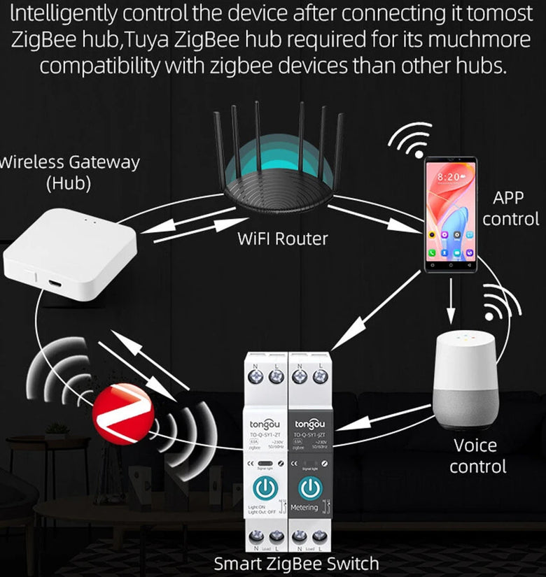 Notice:1. Zigbe version requires a zigbe hub/Gateway for remote control.2. Wiring: Power must enter from the top and must be Live line + Neutral Line (L+N). Live line + Live line (L+L) cannot be used.3. TO-Q-SY1-ZT model have NO overcurrent protection, can not set current ,voltage in APP.