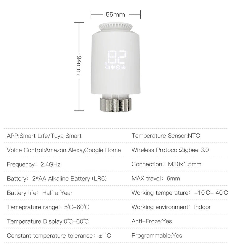 Product Model: Tuya Smart Zigbe3.0 Thermostat Radiator Valve Actuator