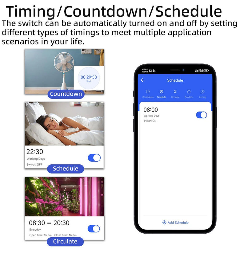2. Timing/Schedule Function: Set schedules to automatically turn devices on or off at specific times.