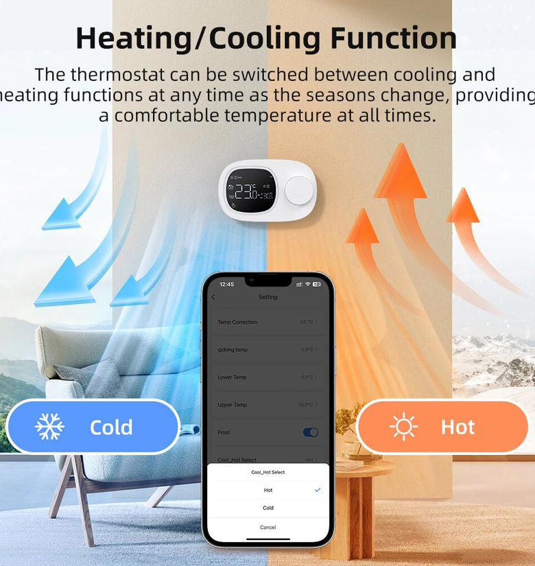 Equipped with both heating and cooling modes to maintain a comfortable environment in any season.