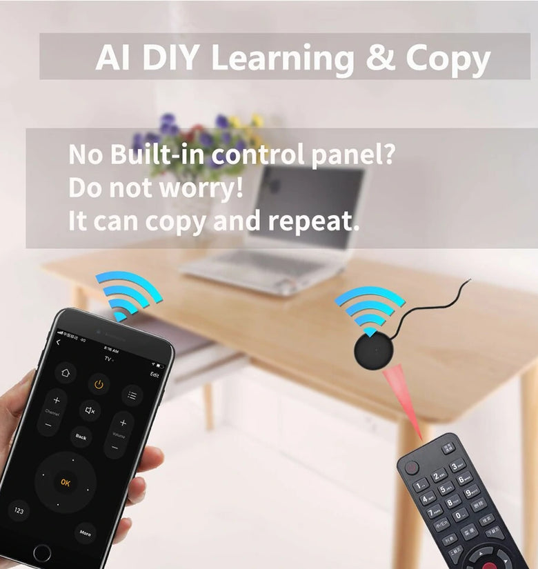 With The Smart Universal IR Remote Control, you may use your smart phone to control home appliances, such as STB(Set-Top-Box), TV Box, TV, Air Conditioner, Fan, DVD, etc. Compatible with most of brands, for details, please refer to the supported brand list in App. Besides, it has LEARNING FUNCTON, allows you to copy the key function of original remote control to App.