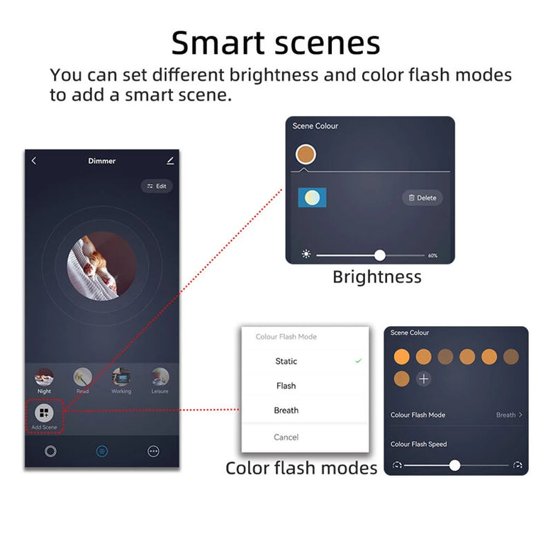 3. Smart Scenes: Set various brightness and color flash modes to create dynamic smart scenes suitable for different moments.