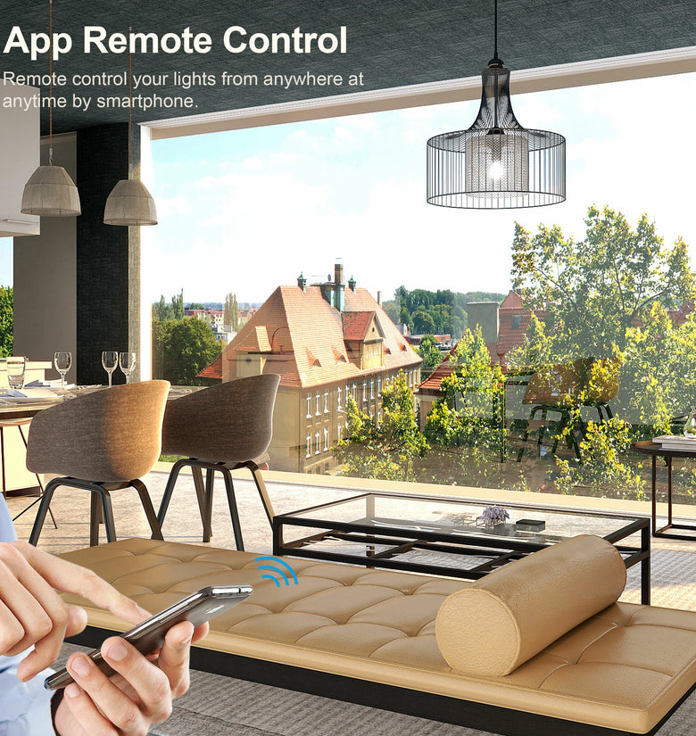 Remote control lighting or home appliances via Smart Life app from anywhere at anytime.