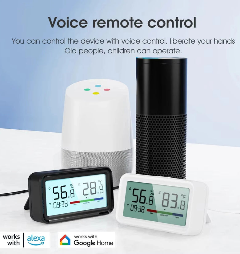 You can use voice control through Alexa and Google Home Assistant to understand the current temperature and humidity. Connect to the Tuya APP on your mobile phone, and you can start your smart home journey with simple configuration, freeing your hands. For example, you can say 'Alexa, what is the temperature in the bedroom?'