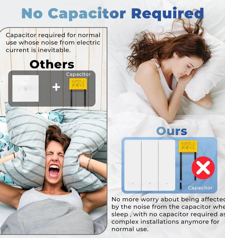2. [No Capacitor Neede]The New Updated Version Does Not Need A Capacitor, Better User Experience Without Current Noise; Normal Use Of This Switch Requires A Tuya Zigbe Hub (Additional Purchase Is Required), Compared With Other Hubs, It Is Compatible With Tuya Smart Devices Sex Is Higher.