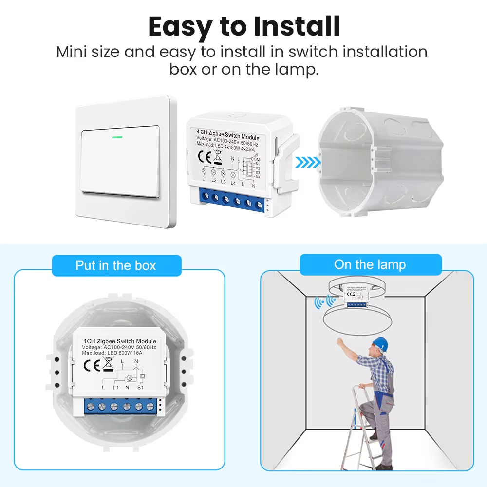 [ Easy to Install ] -Mini size switch module can be installed in switch installation box or on the lamp easily.(Notice: please turn off electricity during installation).