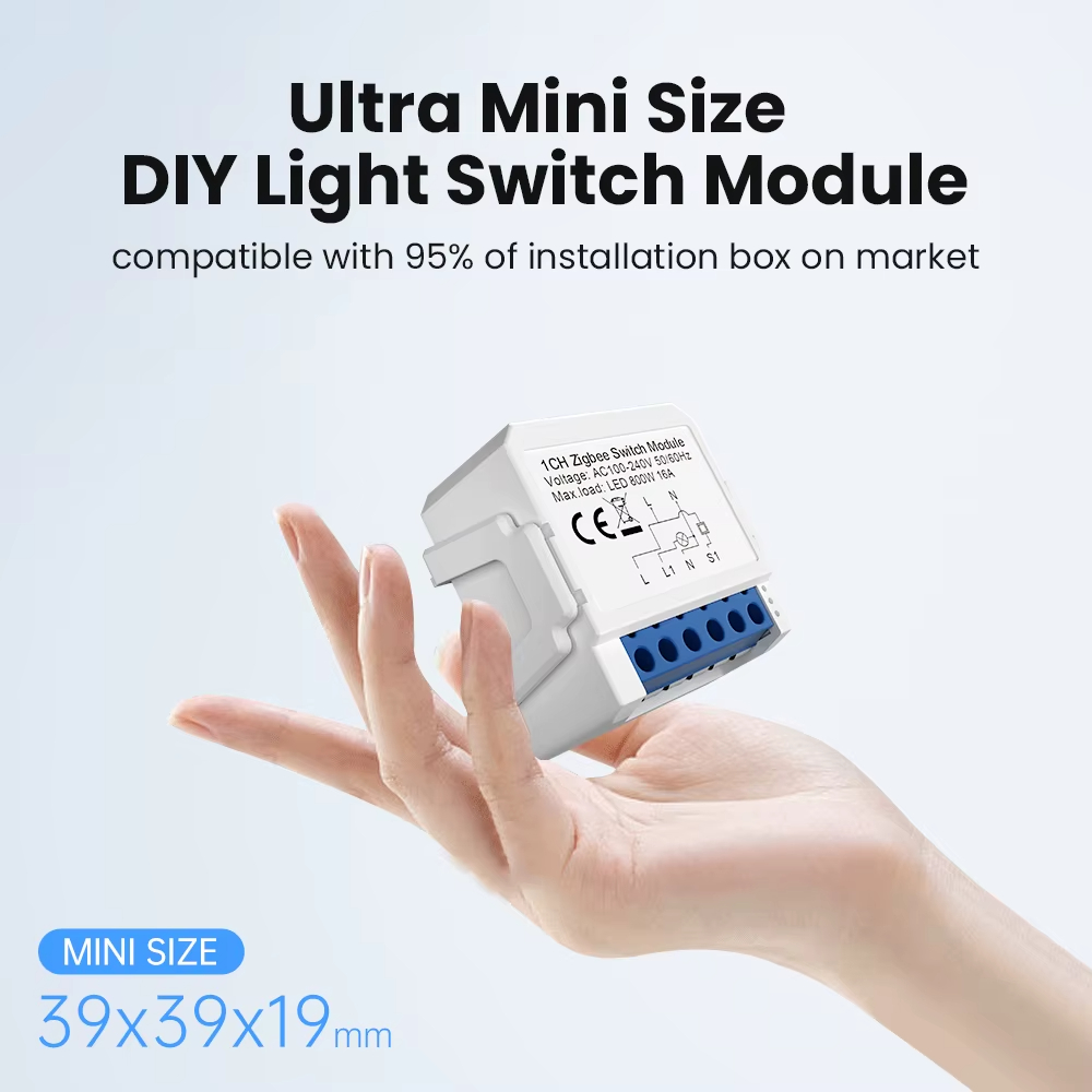 [ Ultra Mini Size DIY Light Switch Module ] -39X39X19mm ultra mini size body,compatible with 95% of installation box on market.