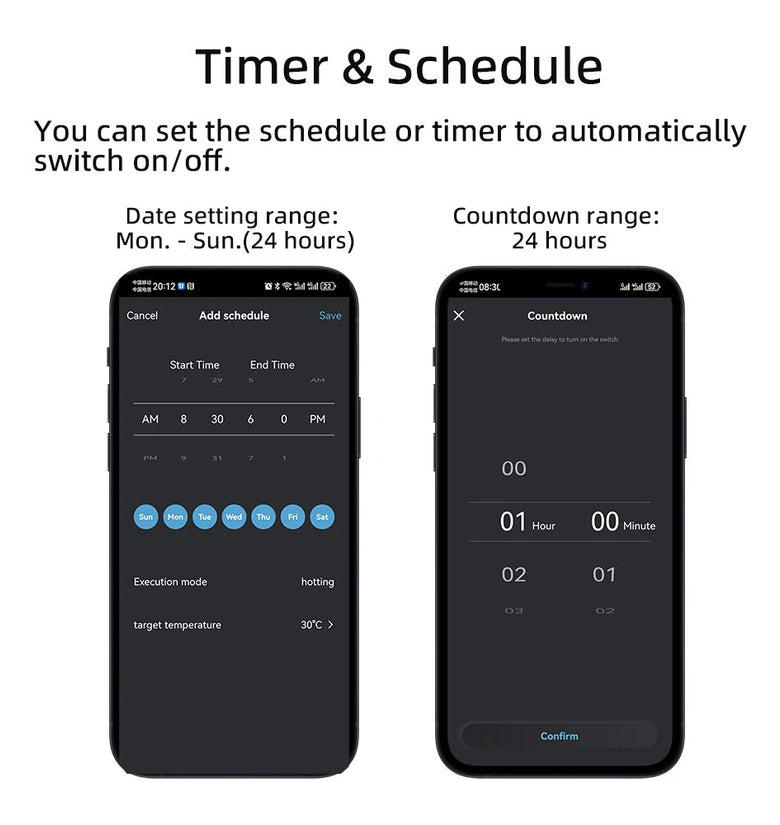 3. Timer & Schedule Automation: Set schedules and countdown timers for custom on/off switching.