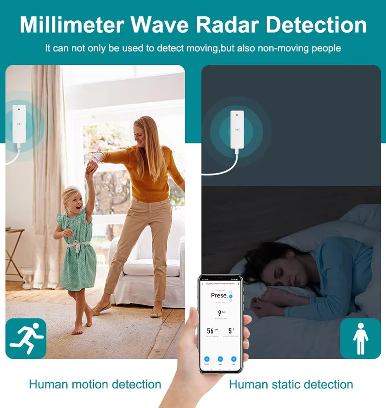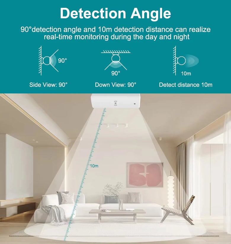2. High Detection Range: Detects human presence at distances up to 10 meters, suitable for various home settings.