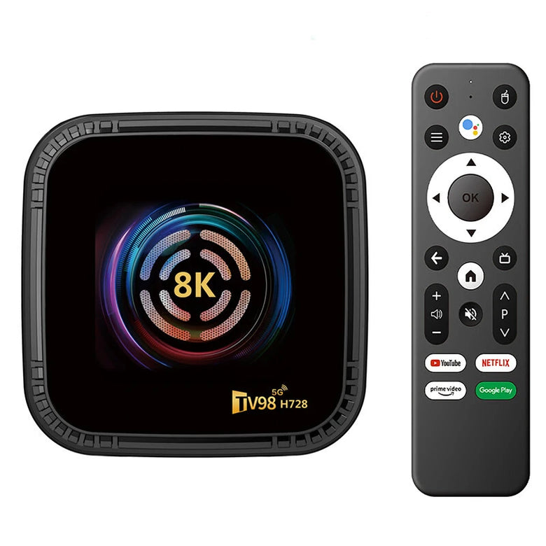 • TV98 H728 8K UHD Android 14.0 TV Box HDR10+ 4GB RAM 64GB Storage Allwinner H728 Octa-Core Wi-Fi 6 BT5.0 8K Streaming Device Smart Media Player Set Top Box
