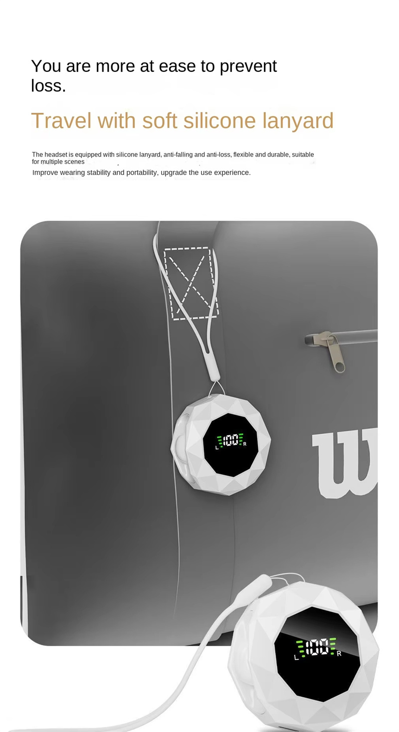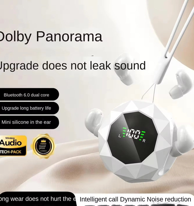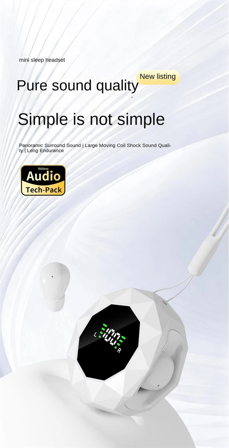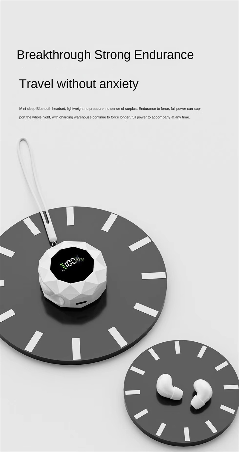 • TWS Sleeping Earbuds Wireless bluetooth V6.0 Earphone Panoramic Surround Sound LED Digital Display In-ear Sports Headphone with Lanyard