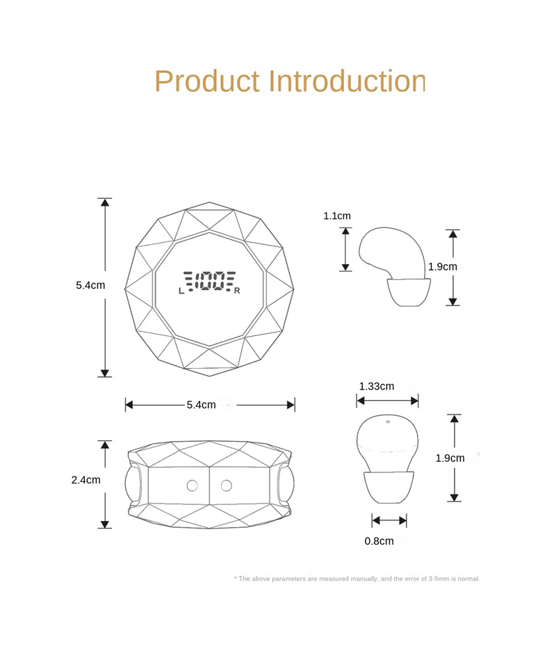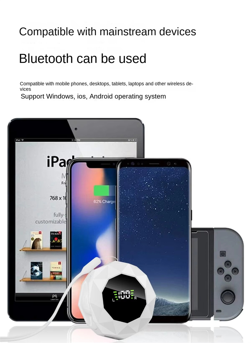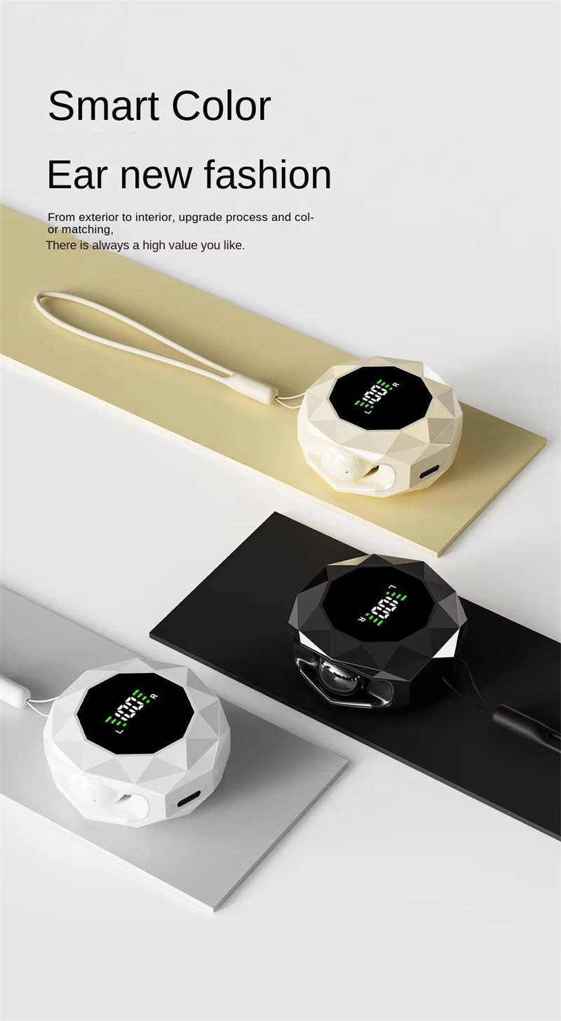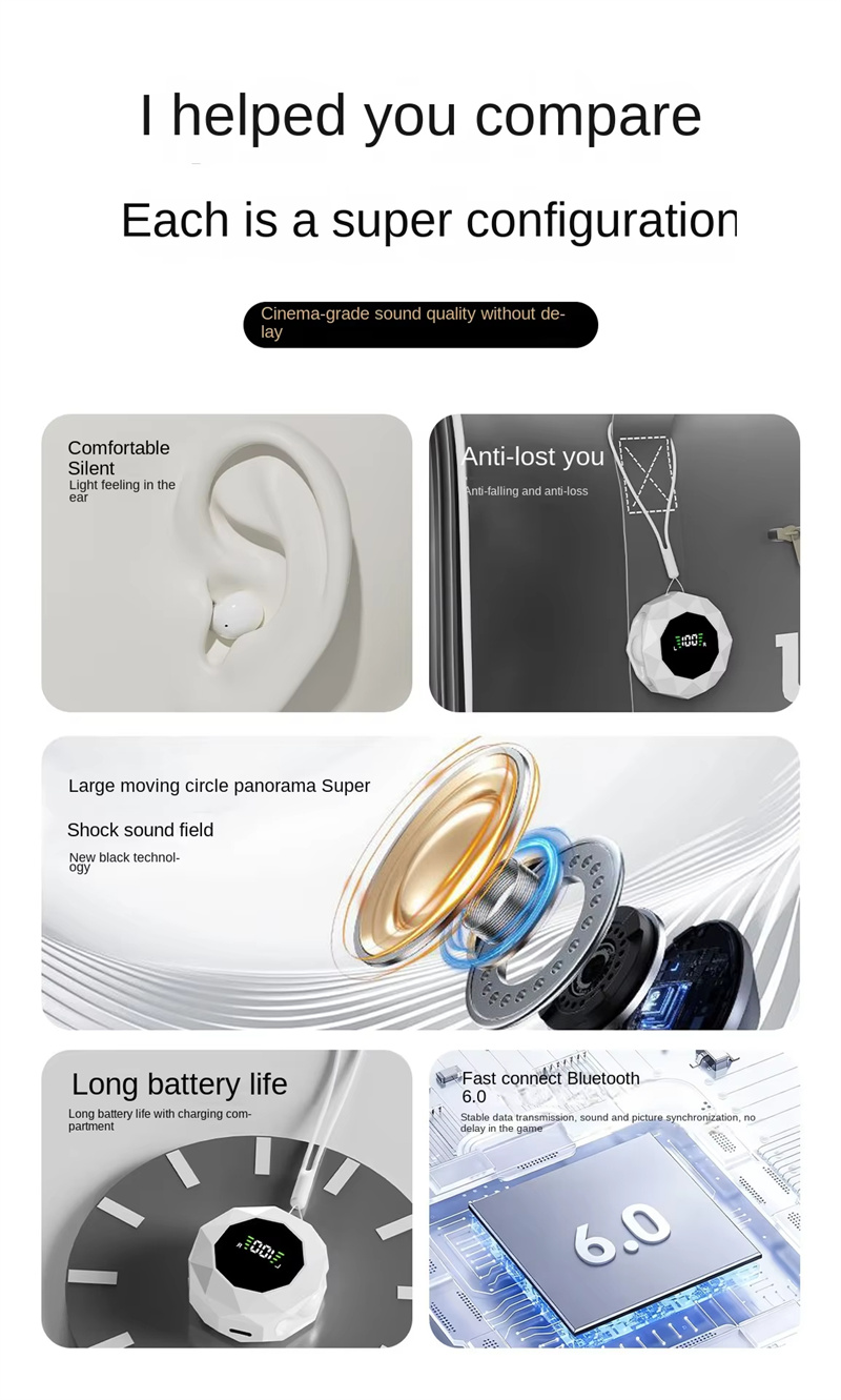 • TWS Sleeping Earbuds Wireless bluetooth V6.0 Earphone Panoramic Surround Sound LED Digital Display In-ear Sports Headphone with Lanyard