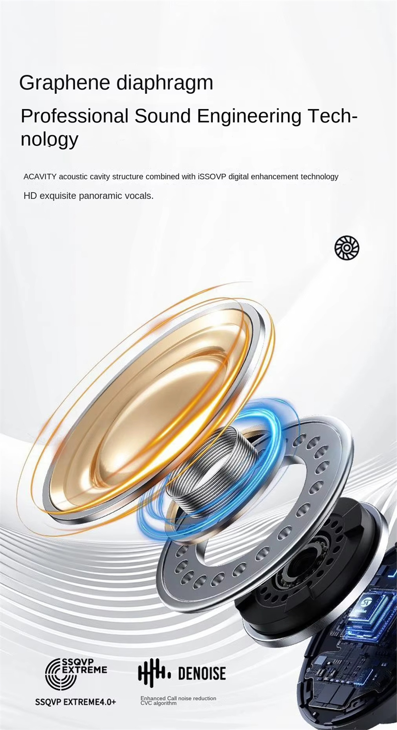 Experience immersive cinema-grade audio with cutting-edge panoramic surround sound features. The large moving-coil diaphragm combined with graphene sound engineering delivers enhanced bass, clear highs, and rich audio depth, ideal for music lovers or movie enthusiasts.