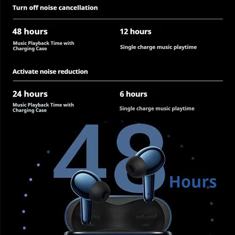 Long-lasting listening with an ultra-efficient power management system delivering 48 hours of uninterrupted audio playback (with the charging case). The robust battery life equips users for lengthy journeys and extended calls—perfect for work, travel, or leisure.