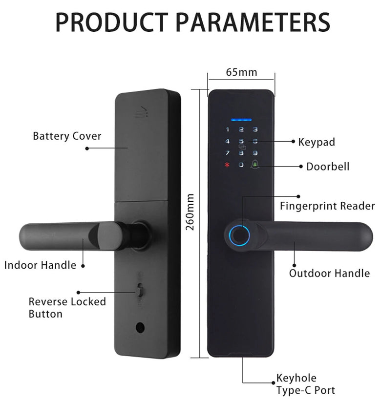 1. Five Unlocking Methods: Easily access your door using fingerprint, password, IC card, key, or remotely via the app.