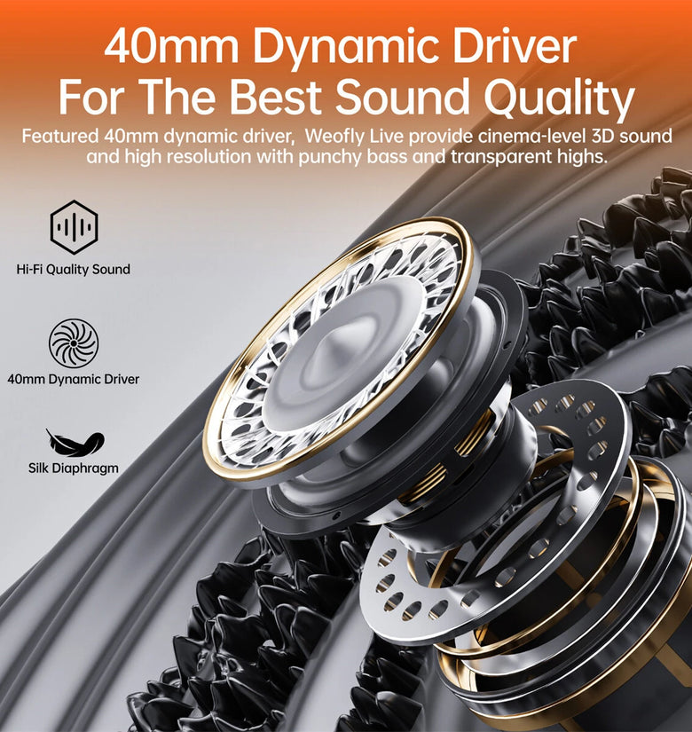 3. 40mm Dynamic Driver: Delivers cinema-level 3D sound with punchy bass and high-resolution highs.